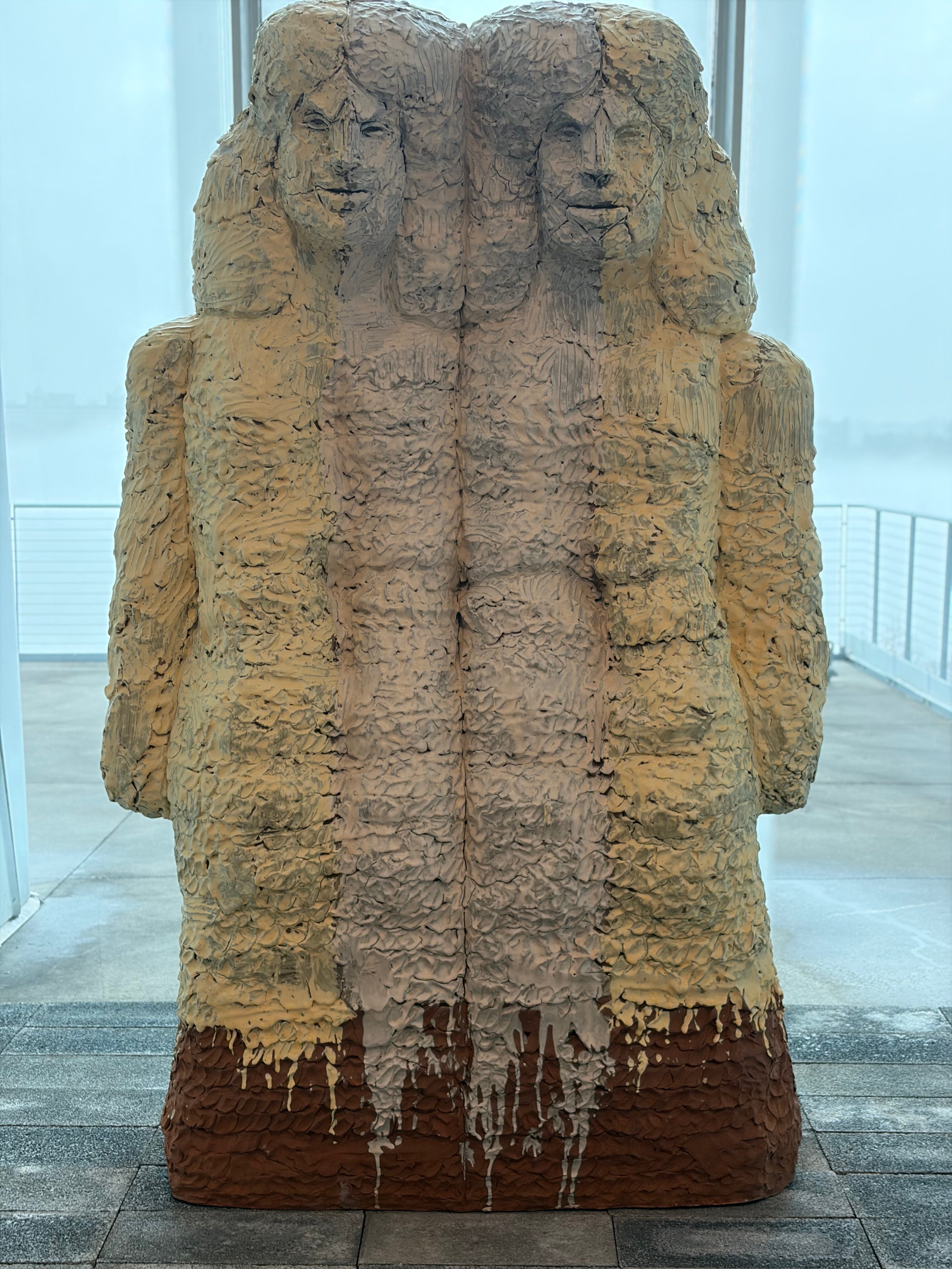 The twin figures reflect her sense that she never makes art as an individual, but always alongside others, including her family and ancestors.